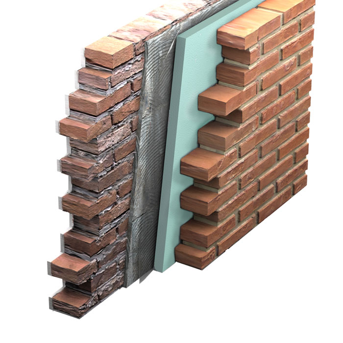 Placa de yeso > Barrera de vapor > Lana de vidrio > Placa OSB > Tyvek > EPS > muro de ladrillo / madera