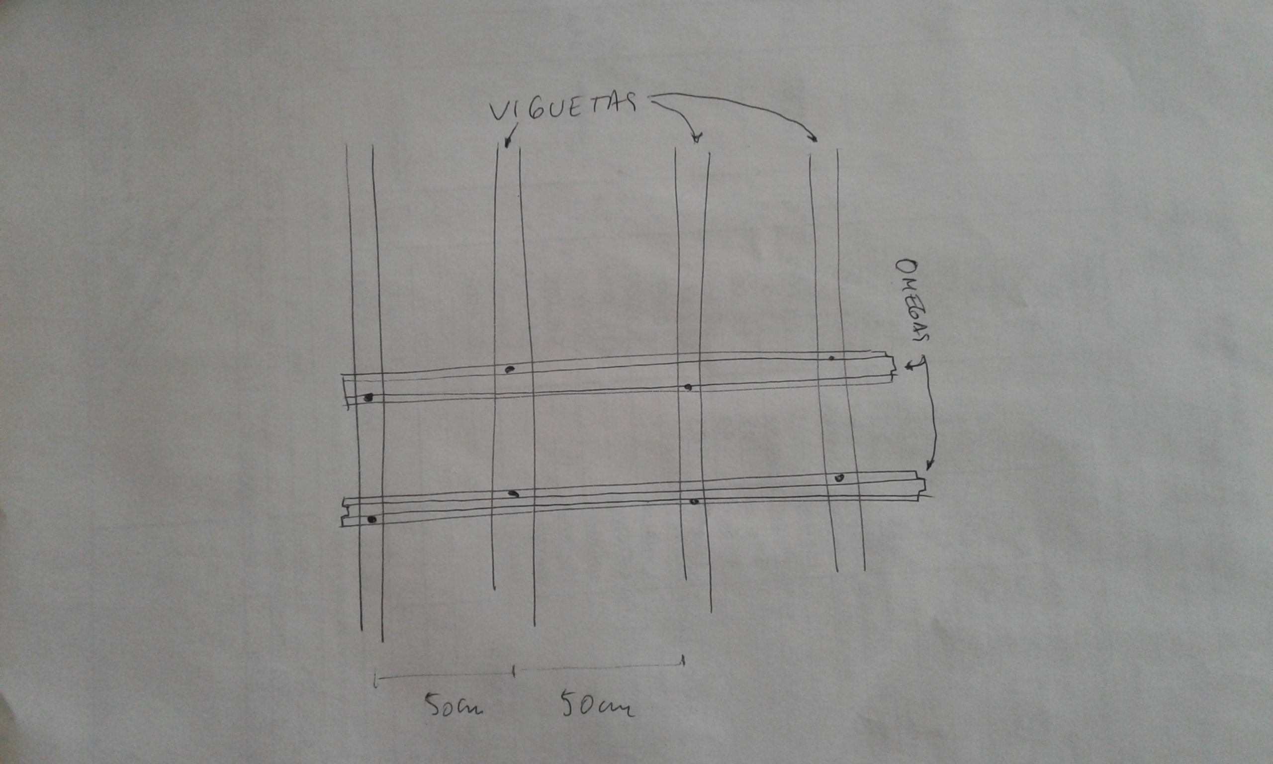 Hola gracias por tu respuesta y consejo , te cuento que el techo de concreto es de 10m cuadrados , si yo pienso copiar la caida del techo , lo tengo que hacer asi porque tengo en una de las paredes una pequeña puerta para una especie de deposito , que llega casi a tocar el techo apenas unos 8 cm del techo . ¿los tarugos de plastico o metal?