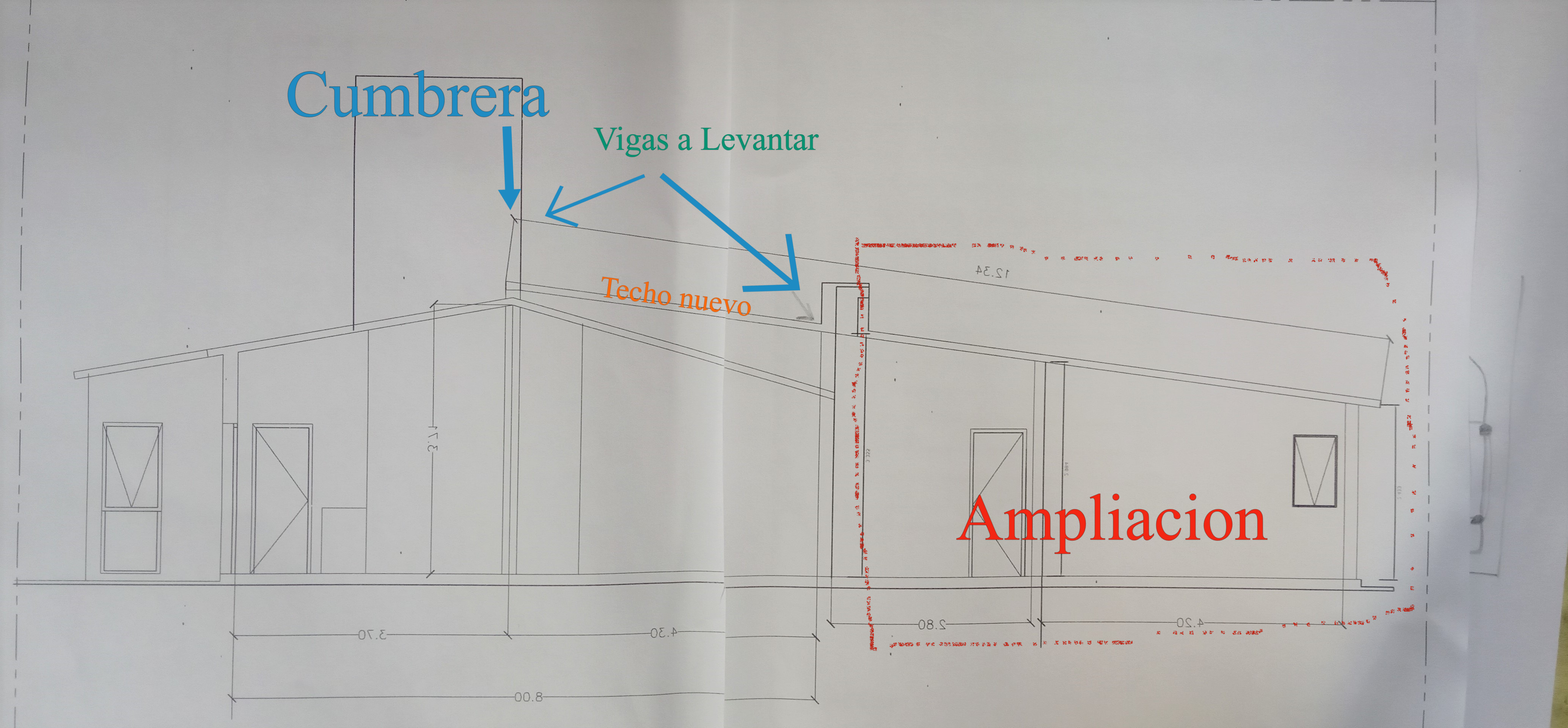 Sobre la Planta indico cumbrera y lo que seria la ampliacion deseada
