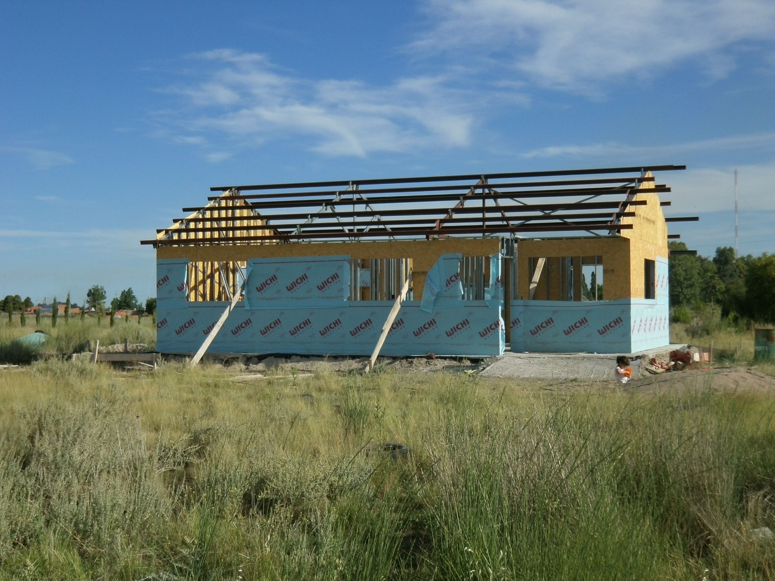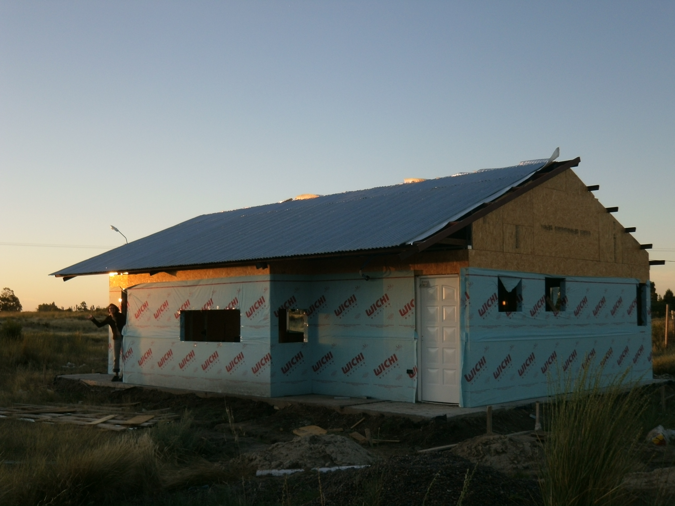 De arriba hacie abajo se compone de : Chapa ondulada, aislante con foil de aluminio de 1 cm, colocado siguiendo la caida del techo, placas de OSB de 9 mm, tirantes de hierro sobre cabreadas. Abajo ira un cielo razo con lana de vidrio.