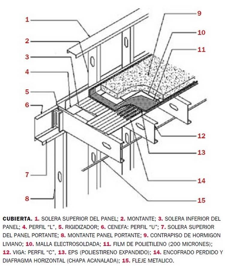 Estructura (en general se hace con pgc de 200mm) y todos sus refuerzos algo asi: Nosotros en lugar de chapa le ponemos OSB al estilo yanqui (wood frame) asi: eso nos permite montar la planta alta sobre algo plano lo cual no se puede hacer sobre la chapa..