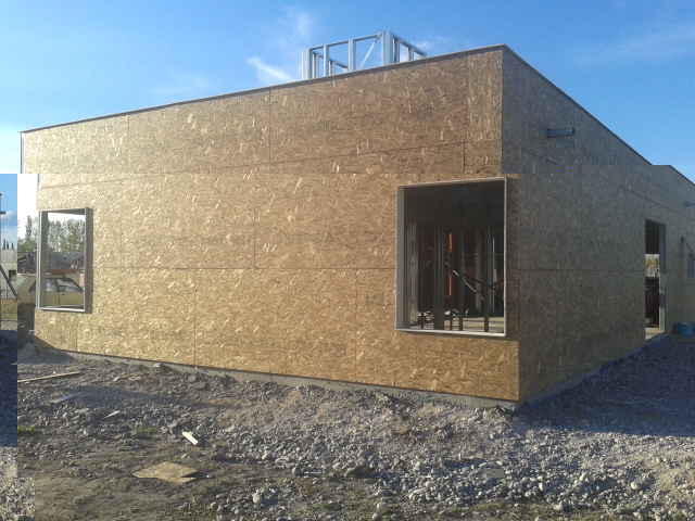 El tema es hacerle un azotado hidrofugo al ras del OSB (el cual lo bajas 1cm del nivel de platea) y luego el EPS o la placa cementicia ..(segun lo que uses) lo bajas otro centimetro.