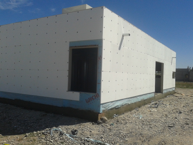 En esta etapa ya esta realizado el azotado y alisado y se nota que el wichi (barrera climatica) que va justo sobre el OBS, respecto de la platea esta en la misma linea..