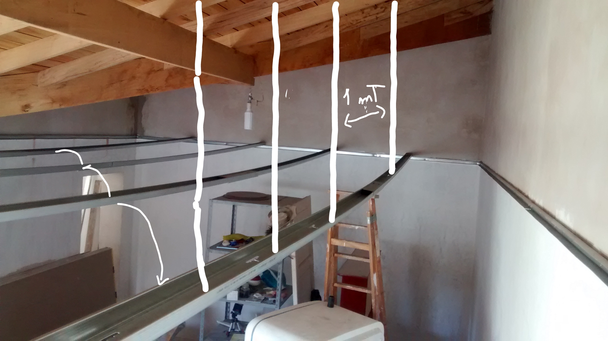[attachment=0]CYMERA_20160324_162158.jpg[/attachment]HolA Daniel, comenze a empalmar las maestras y los montantes, todo ok.te cuento que las maestras que coloque me quedaron a 0.83 cm de distancia entre una y otra, no de 1 m como me sugeriste ...es lo mismo? Y por otro lado...te muestro coo va quedando la cosa.solo estan presentadas las maestras, pregunta....