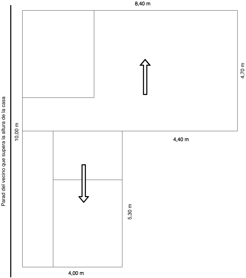 Ya tengo armado los paneles para todas las paredes con perfiles de 100mm y usando una modulación de 60cm, hice todos los paneles portantes porque no tengo bien en claro como apoyar el techo. Mi idea es rigidizar los paneles con OSB y hacer una terminación EIFS, salvo una de las paredes que va a estar pegada a la pared del vecino (se ve en la imagen de abajo) que en esta pared solo voy a rigidizar con OSB y en el techo mi idea es usar chapas prepintadas.