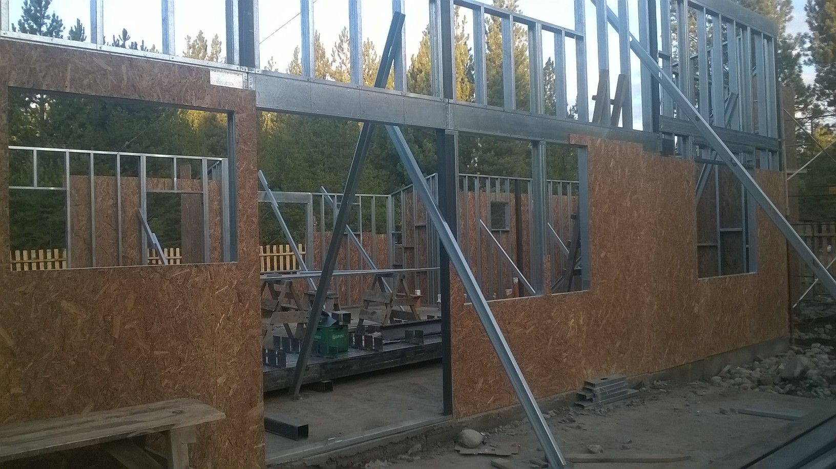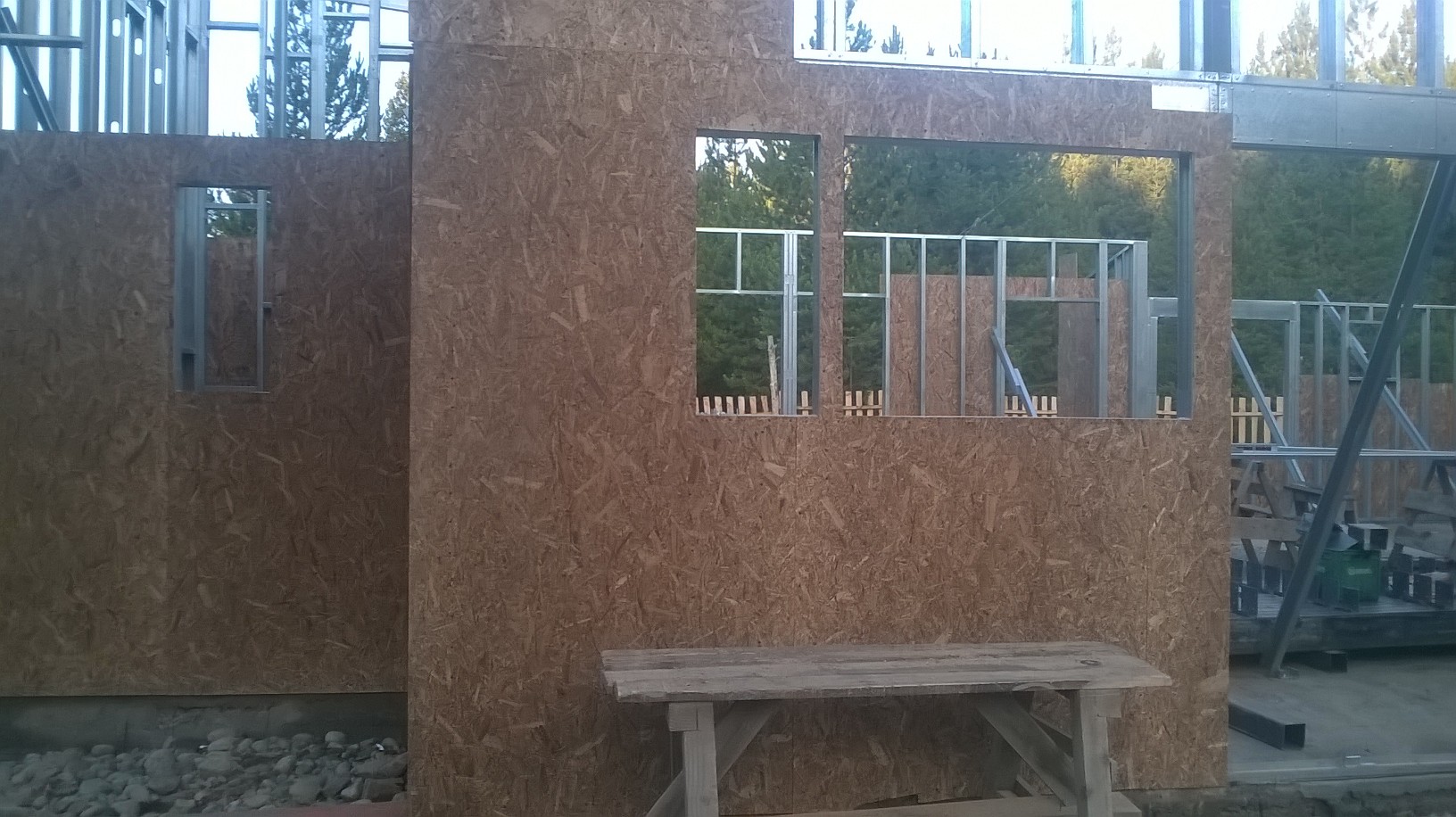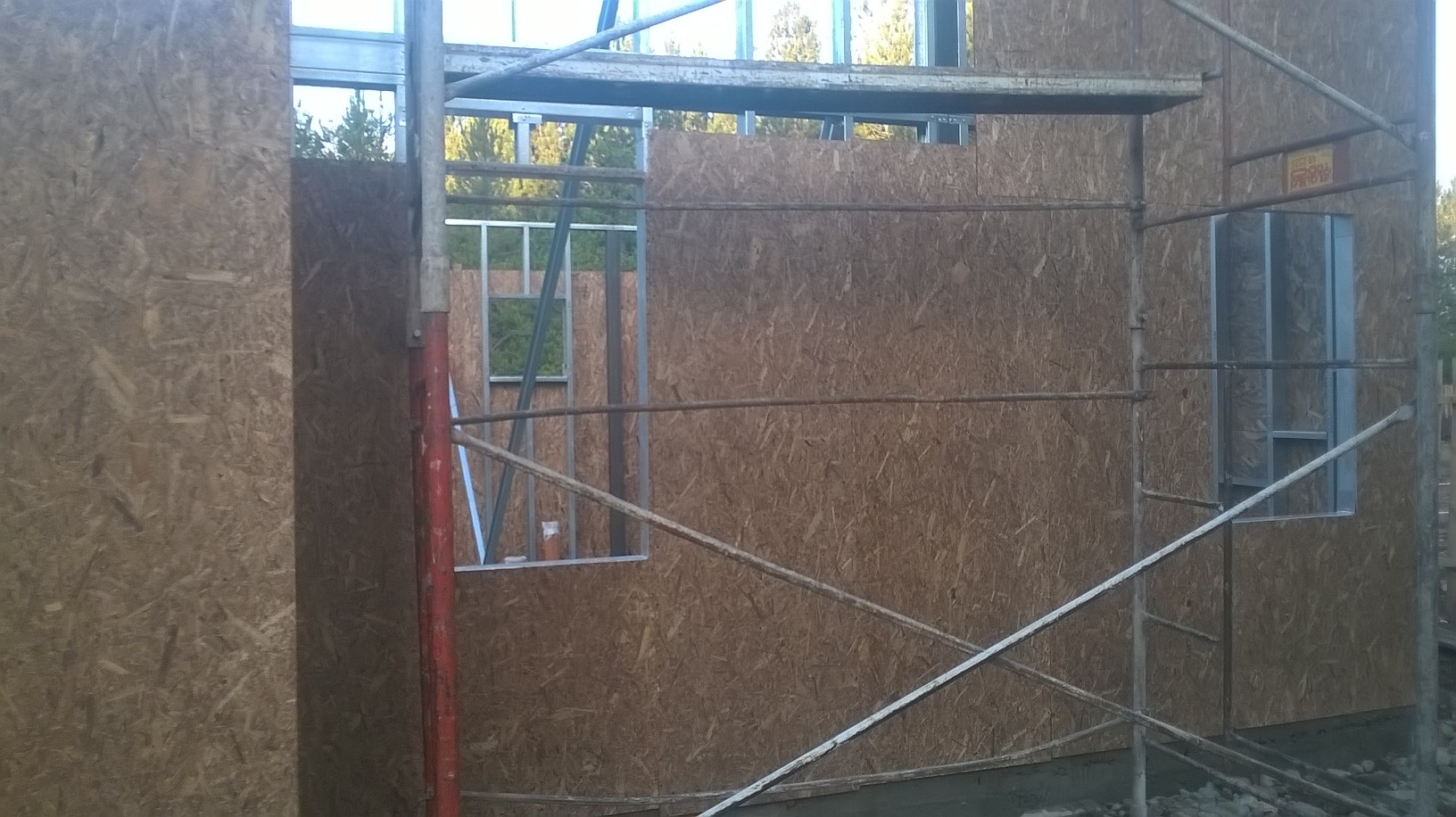 ya termine de levantar todos los paneles, y ahora tengo que comenzar a fijar los tableros de OSB a la estructura exterior.