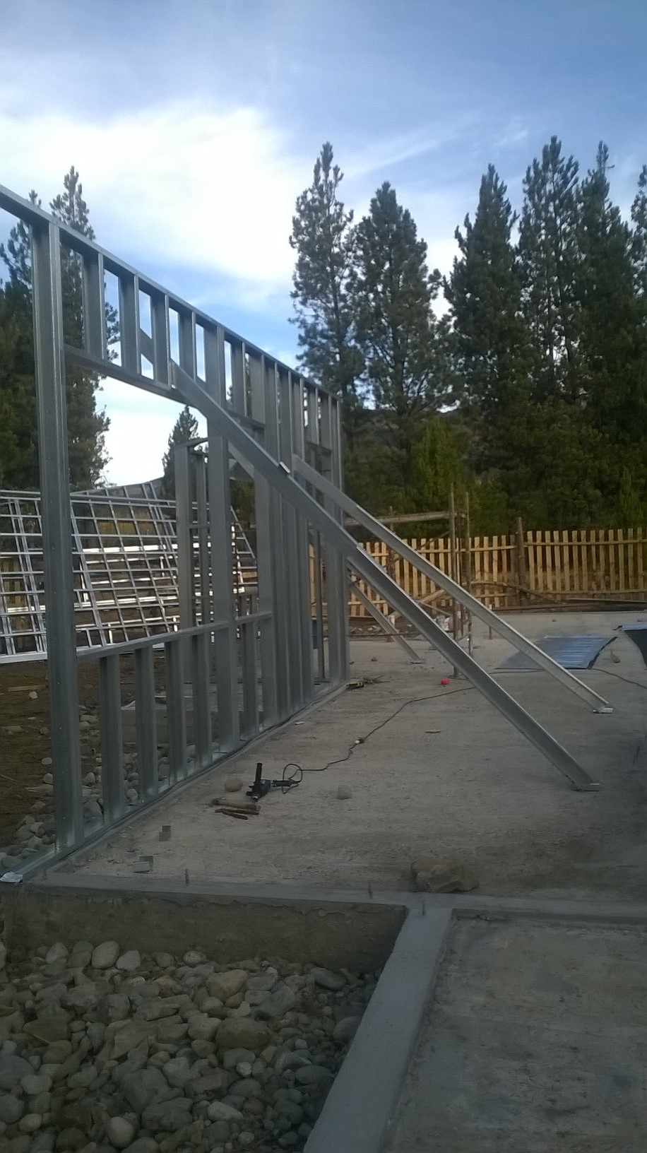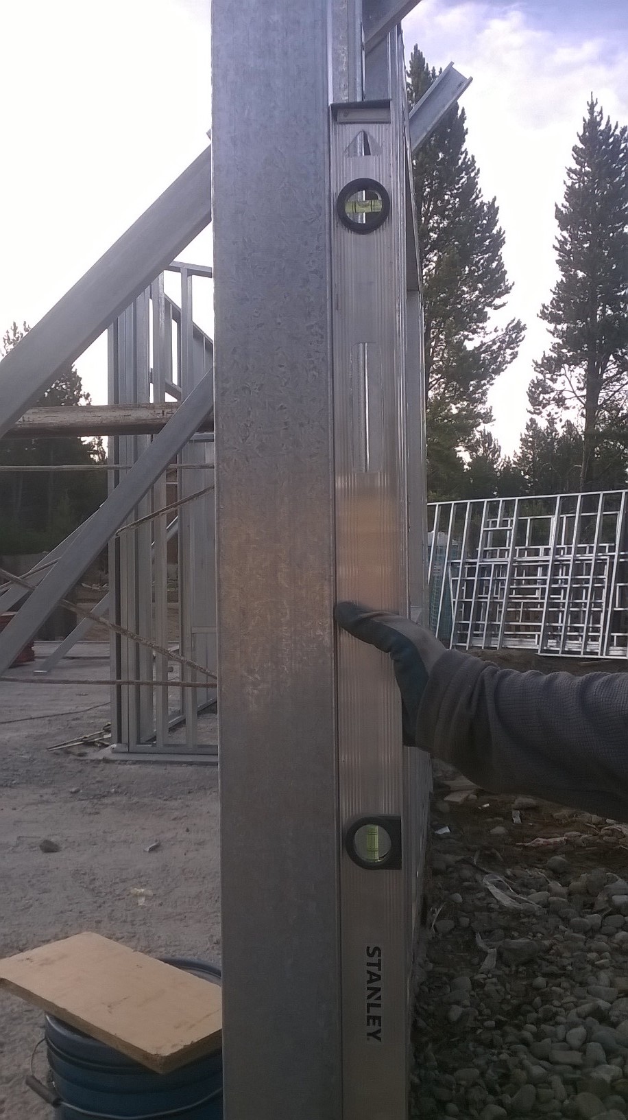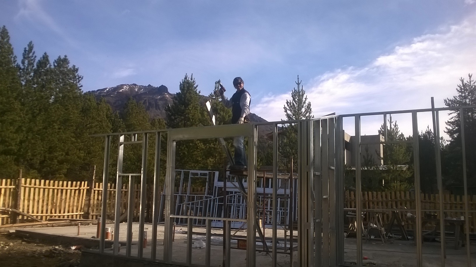 ya termine de levantar todos los paneles, y ahora tengo que comenzar a fijar los tableros de OSB a la estructura exterior.