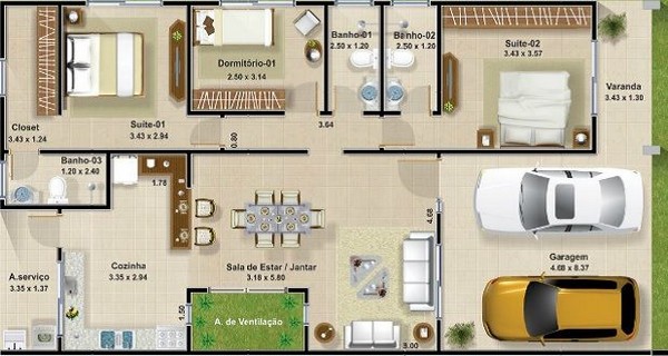 Hola, mira te envio 2 archivos uno que es de una casa con 2 hab es para que veas como resolvieron los clos (closet o armarios) que están empotrados en la pared y el otro archivo con 2 vehículos en la entrada, es una casa con una resolución de 3 habitaciones y baños que me parece bastante aceptable y tenes volar el patio interno y esa pared pegarla a la del vecino y hacer la ciega, sin ventanas, ya que las mismas van a estar adelante y atrás (sur y norte) siendo los ventanales mas importantes (mas grandes) los de atrás (aconsejo doble vidriado ) xq ahi vas a tener sol. Saludos Patagonicos