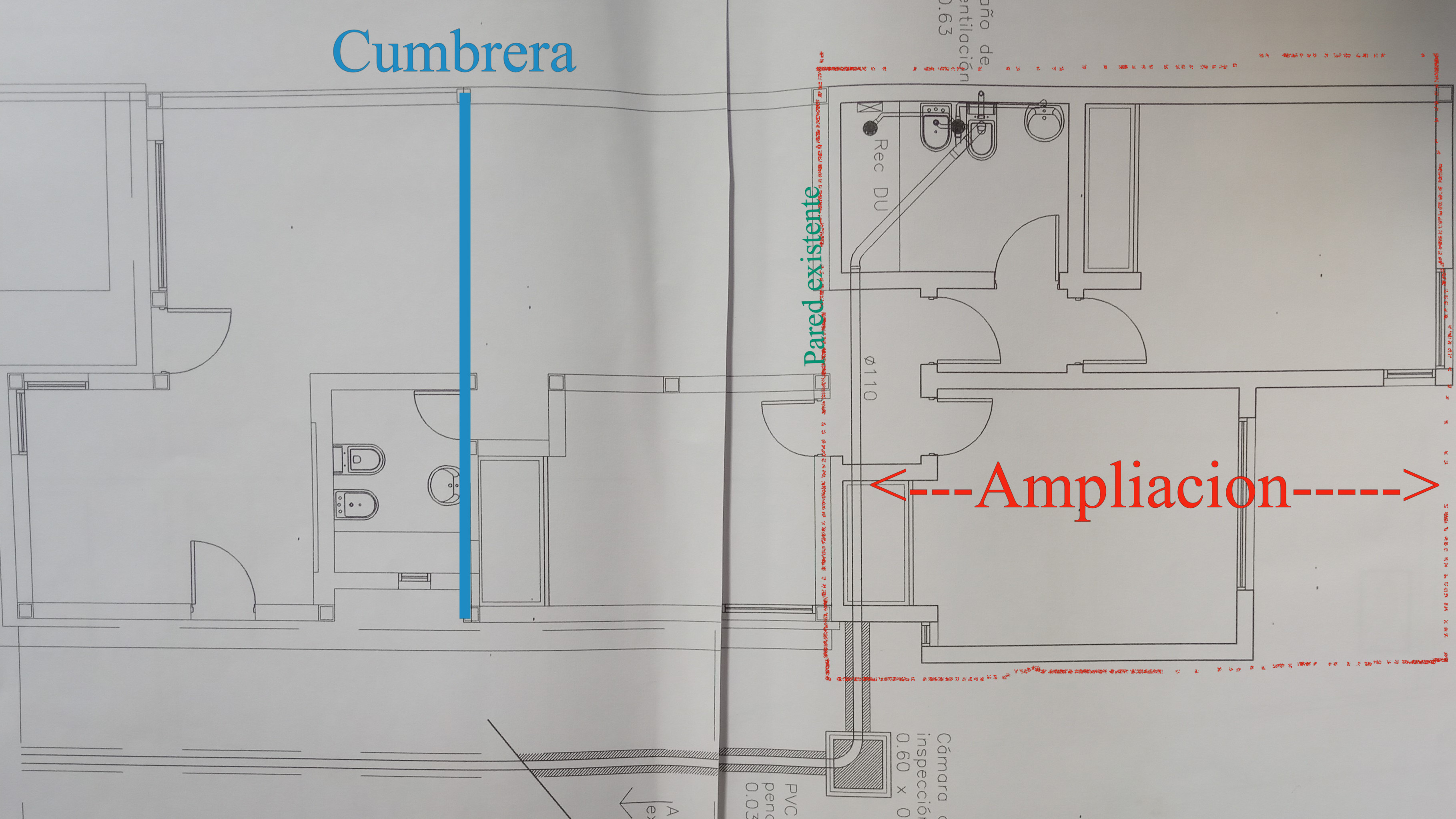 Sobre la Planta indico cumbrera y lo que seria la ampliacion deseada