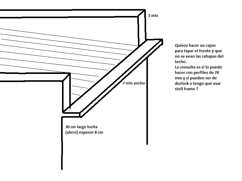 Ahora tengo que hacer un alero (cajón) para tapar la vista de unas chapas del techo y pensé en realizarlo con perfiles PGU y PGC y placas superboard de 6 mm.