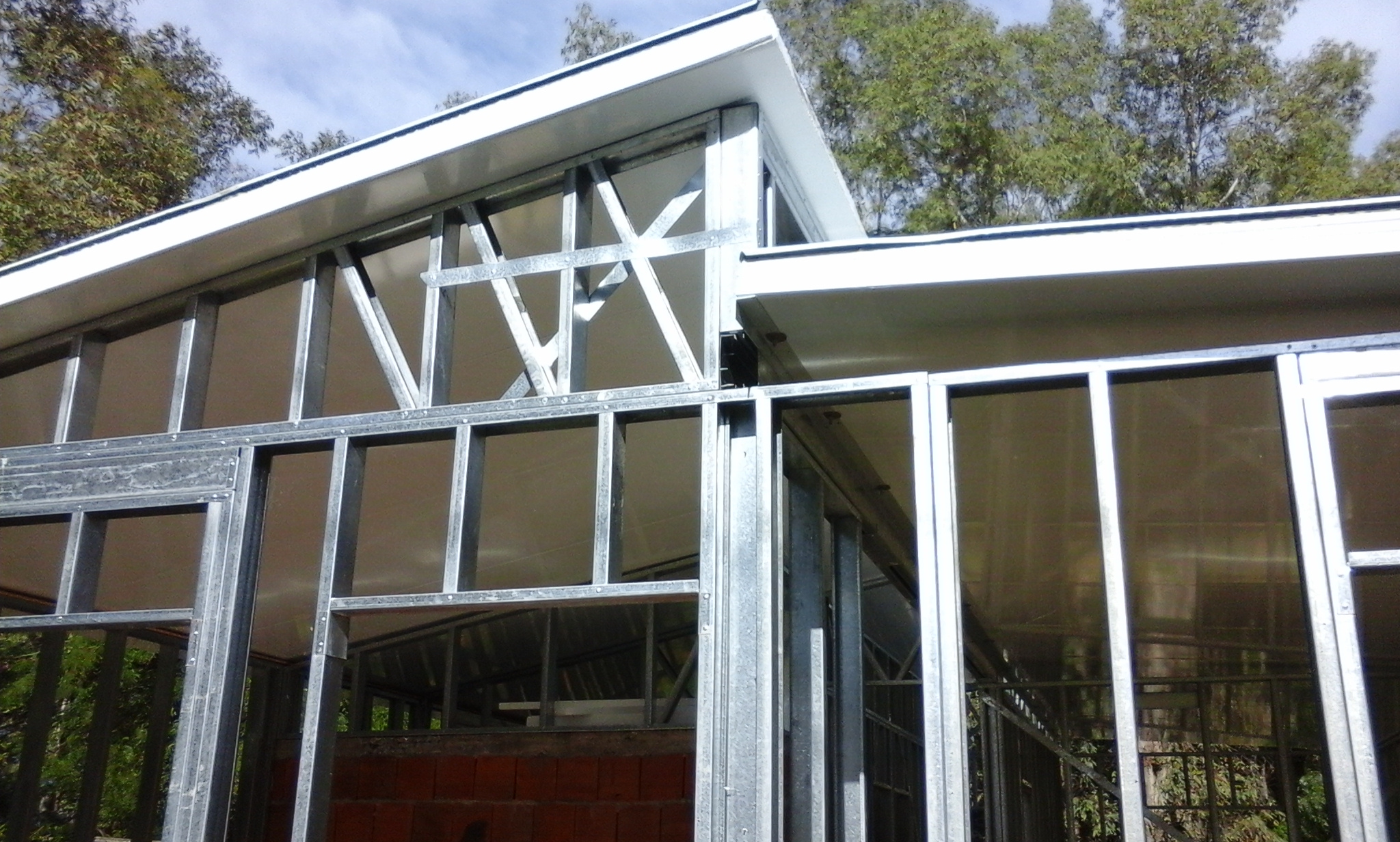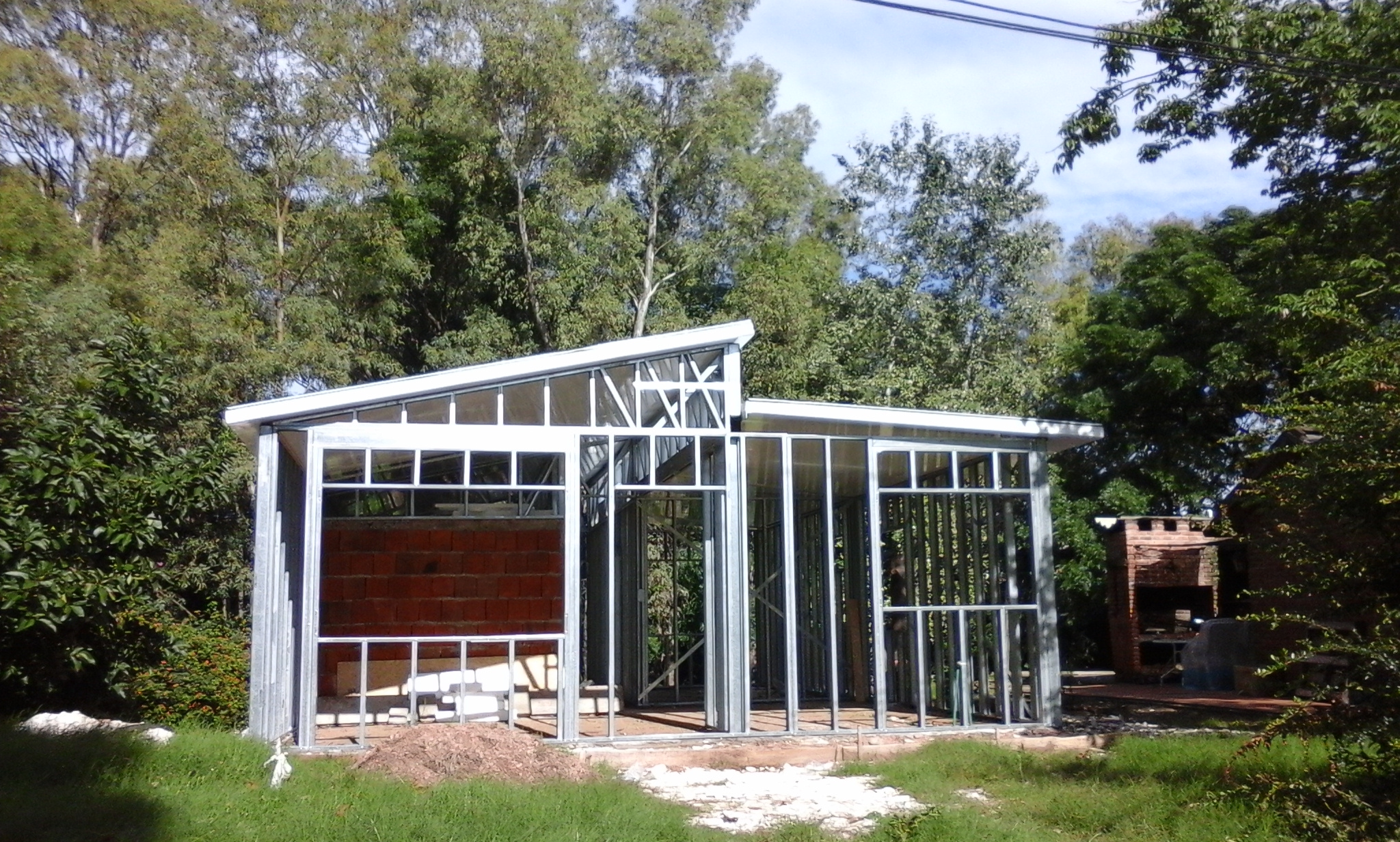hola dario, muy buenas las imágenes y la verdad esos paneles de techos muy buenos, estaría bueno ver como los fijas al techo. Veo que cambiaste la configuración del montante cada 60 cm en la pared del medio de la casa, creo que tendrías que reforzarlo y el tímpano de cierre frontal puede ser que este desfasado??, saludos patagonicos.