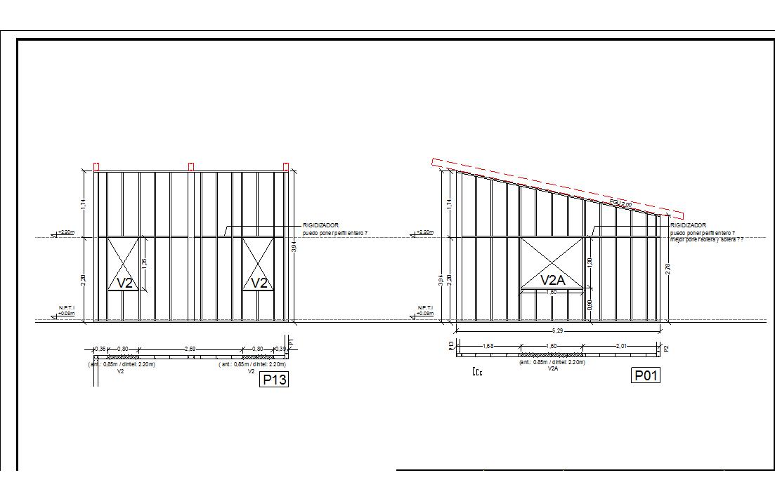 En realidad lo que hizo el arquitecto es una version mas parecida a una construccion con ladrillos que al Steel Framing Standard, pero esta correcto igualmente!!! y en mi opinion no tendrias que tener problemas.. Seguramente vas a necesitar "clavaderas" bastante cojudas porque la distancias entre apoyos son amplias.. si me lo preguntas yo le pondria perfileria de 100 doble espalda con espalda ][ asi cada 80 cm perpendicular obviamente a los cabios que por lo que veo son dobles pero enfrentados [] asi Saludos!!