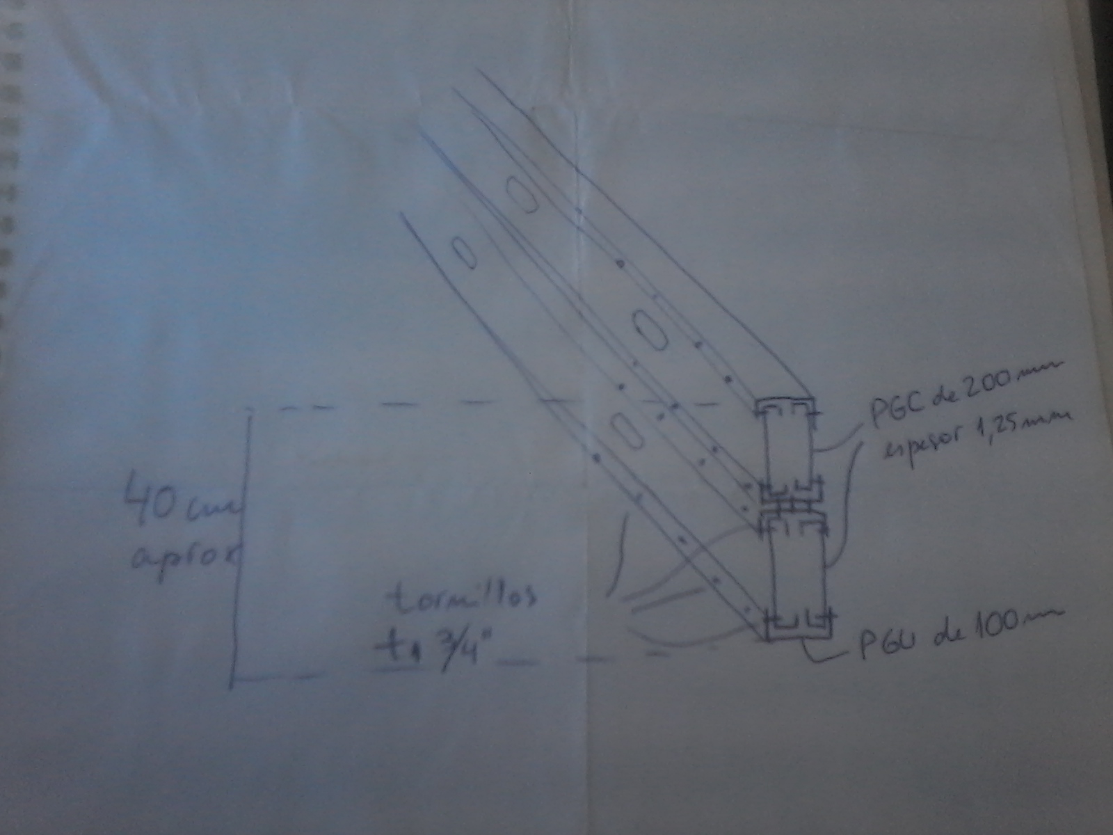 El techo (de chapa) va a estar apoyado sobre una pared hecha con perfilería, la cual va a tener una abertura de 4 metros de ancho por 2 de alto.