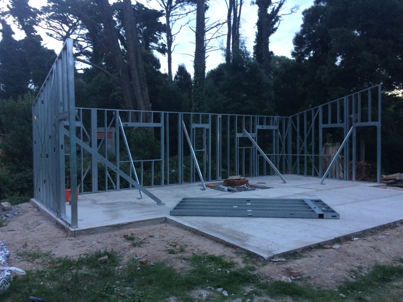 2)yo tengo la mitad del perímetro de mi casa amurado ya (ver foto) y una vez que termine con la otra mitad, empezaré con OSB, luego wichi y sidding. Mi duda es sobre las cruces de SA: luego de rigidizar con OSB externamente, puedo quitar las cruces del lado de adentro de los bastidores?, porque he observado que cuando coloque las placas Knauf (o similar) del lado interno la cabeza de los T1-mecha sumado a el espesor de la misma cruz y cartelas, en algunas zonas de las placas Knauf imagino que generarán una loma. Eso cómo lo resuelvo?, rebajando un poco el yeso de las placas en esas zonas?. Entiendo que las cruces son necesarias cuando ser arman los bastidores en el plano para evitar la pérdida de la escuadra por arriostramiento; pero una vez amurados los bastidores y rigidizados externamente, no dejan de tener funcionalidad las cruces?.